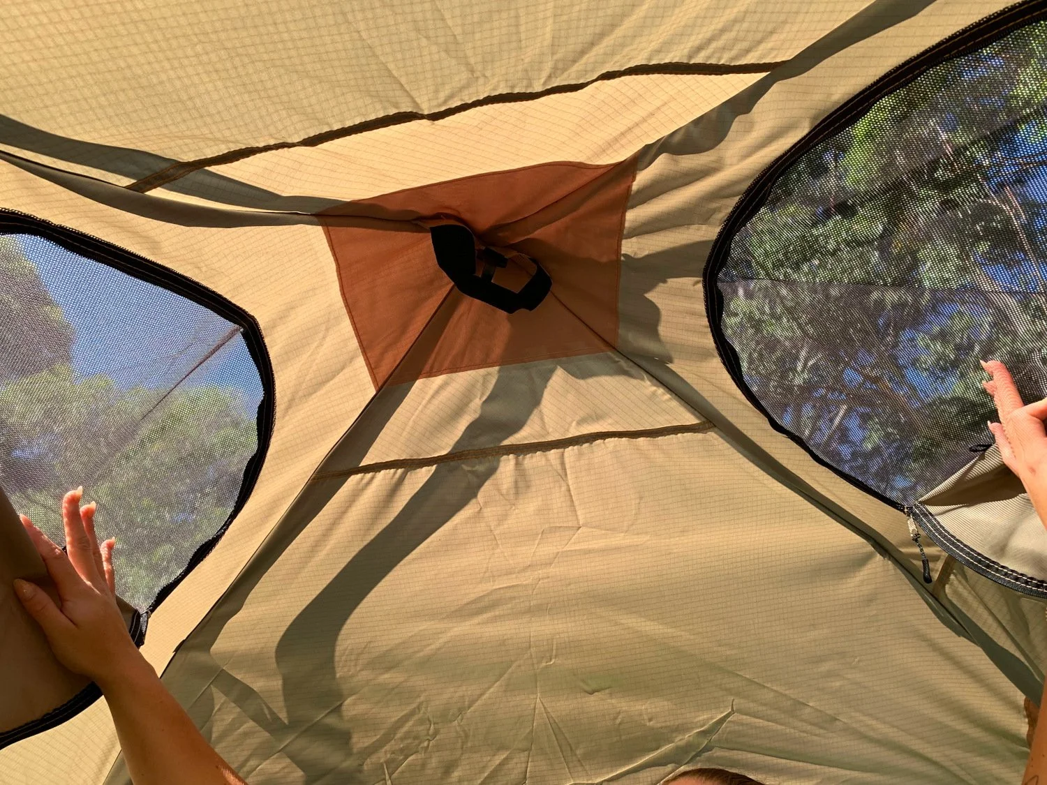 En una tienda de campaña tradicional, las cosas importantes a tener en cuenta son un marco de aluminio de gran calibre y materiales de alto denier (densidad), como ripstop o lona, con una buena clasificación de impermeabilidad. Las tiendas de campaña baratas utilizarán varillas de fibra de vidrio de calibre fino o materiales débiles, así que evita comprarlas porque se te caerán. La Oztent RV5 y la Coleman Cortes Octagon 8 Shelter cumplen con todos los requisitos. La Zempire Evo TXL V2 Air no es una tienda de campaña estándar, ya que es inflable, pero nos sorprendió la solidez de su estructura cuando la montamos.